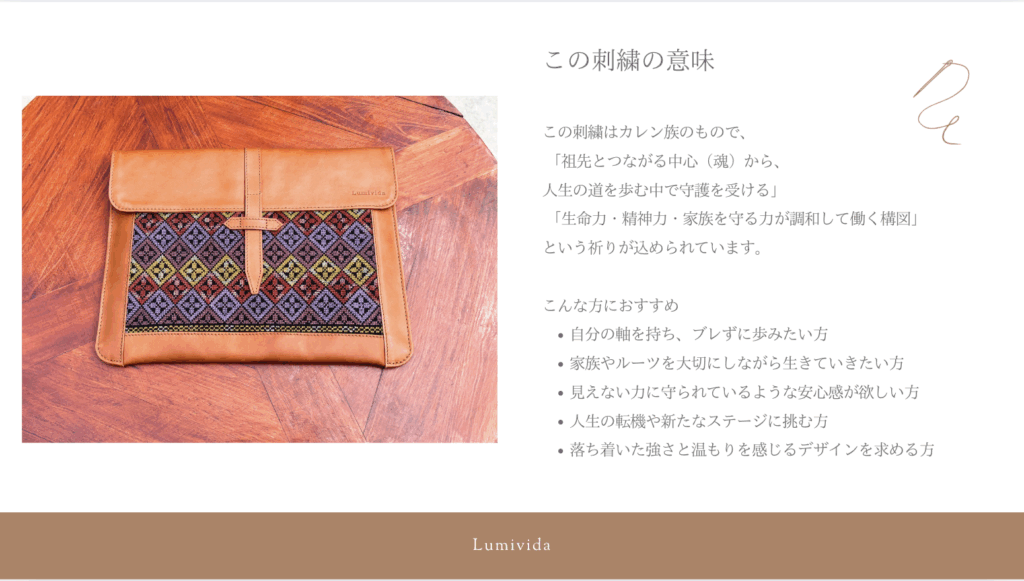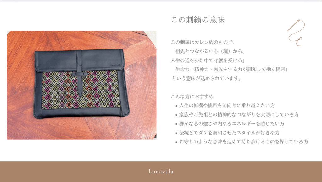 - 刺繍を通じて、カレン族の文化を継承し、アイデンティティを守る活動が行われています。